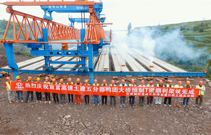 主動想 扎實干 看效果 | 宣富高速五分部鴨團大橋全幅20米預(yù)制T梁架設(shè)順利完成