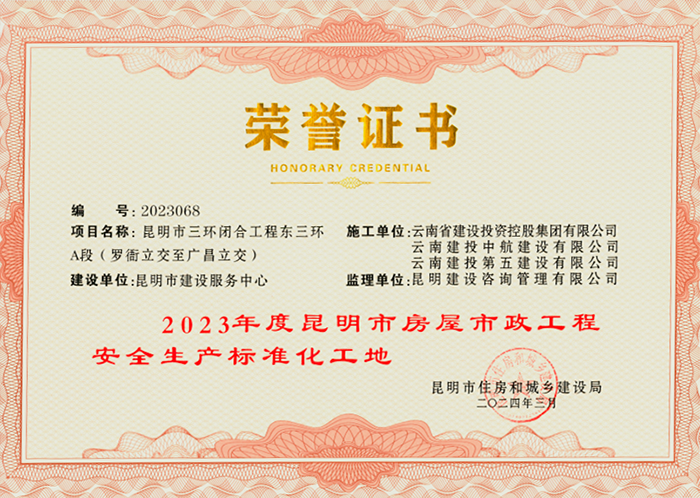 近日,由公司路橋一部承建的昆明市三環(huán)閉合工程?hào)|三環(huán)A段項(xiàng)目獲評(píng)昆明市住房和城鄉(xiāng)建設(shè)局“2023年度昆明市房屋市政工程質(zhì)量標(biāo)準(zhǔn)化示范項(xiàng)目”及“2023年度昆明市房屋市政工程安全生產(chǎn)標(biāo)準(zhǔn)化工地”。安全就是效益,工程質(zhì)量就是企業(yè)“生命線”。自進(jìn)場(chǎng)以來(lái),項(xiàng)目部始終秉持“安全第一,預(yù)防為主、綜合治理”的方針,樹(shù)牢安全發(fā)展理念,壓實(shí)安全工作責(zé)任、筑牢安全生產(chǎn)防線,常態(tài)化開(kāi)展班前安全教育和安全隱患排查整治,狠抓…