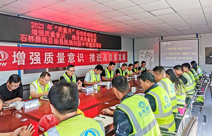9月13日上午,五〇二直管項目部在石林彝族自治縣民族初級中學建設項目組織召開了以“增強質(zhì)量意識 推進高質(zhì)量發(fā)展”為主題的2023年“質(zhì)量月”活動啟動會,直管部班子成員及各科室負責人、建設單位代表、監(jiān)理單位代表出席此次啟動大會。會議要求,一是要充分認識“質(zhì)量月”活動的重要意義,充分運用責任體系建立、質(zhì)量風險分析等質(zhì)量管理手段,全面構(gòu)建質(zhì)量管理體系和高效運行機制,切實提高在建項目人員質(zhì)量管理素質(zhì),提升…