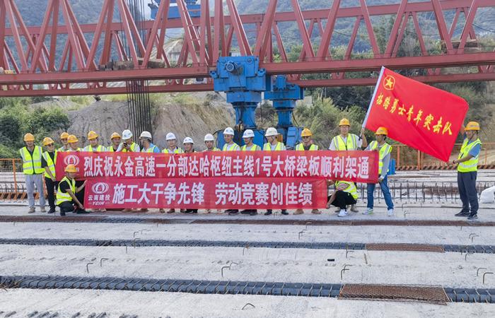 永金高速一分部達(dá)哈樞紐立交主線1號(hào)大橋梁板順利架通