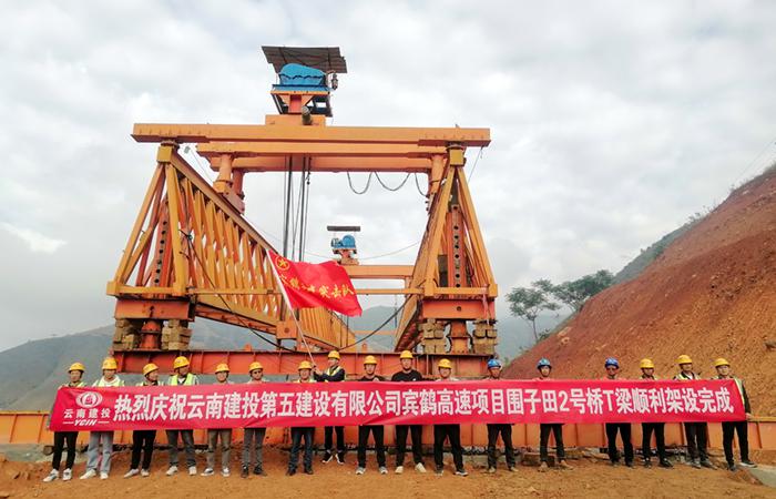 賓鶴高速項(xiàng)目八工區(qū)圍子田2號(hào)大橋梁板架設(shè)完成